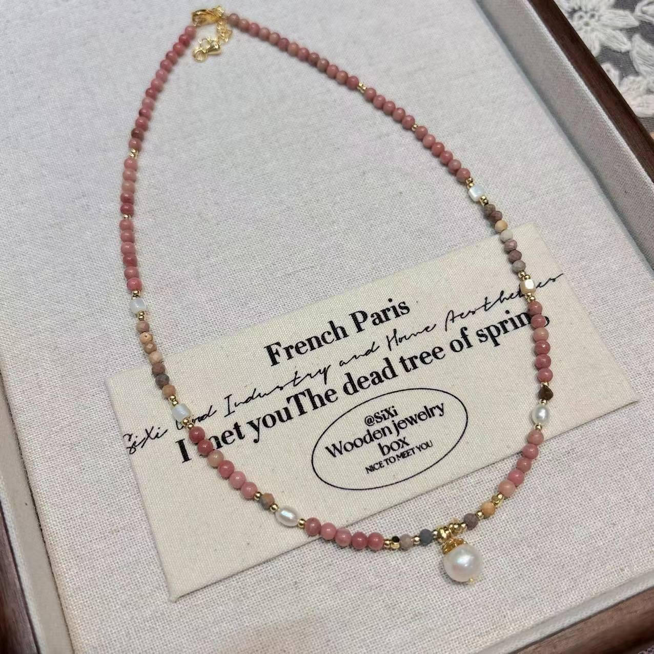 ドーパミン赤紋石ビーズネックレス女性天然淡水真珠ネックレス
