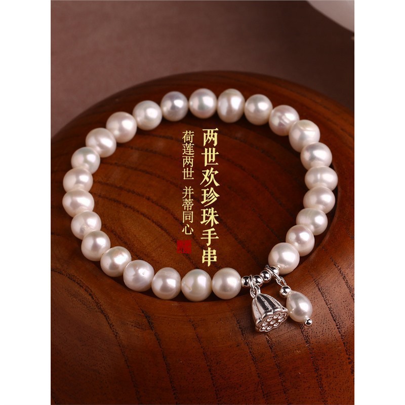 Liangshihuan S925 シルバーパール蓮ブレスレット女性のライト高級ニッチハイエンドビーズブレスレット多用途フレンチブレスレット