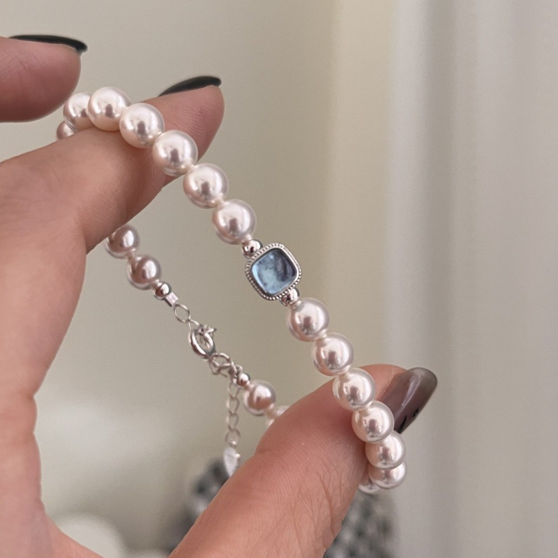 S 925純銀きらきら透明天然ブロック海藍宝施家真珠ブレスレット女子学生軽豪華大衆新中国式ブレスレット