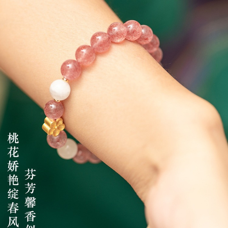 いちご晶桃花手串女民族風輸送桃花いちご晶水晶鎖女娘蜜鎖女