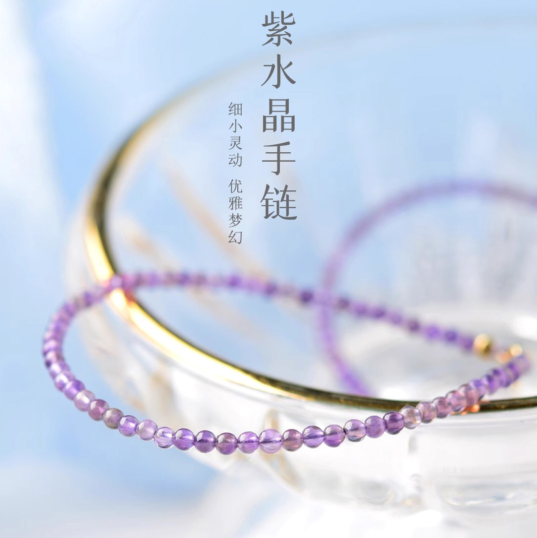 紫水晶のブレスレットの女性の極めて細い水晶の瑪瑙の玉髄の翡翠の宝玉の散の玉の細い米の玉の紫晶の手の串