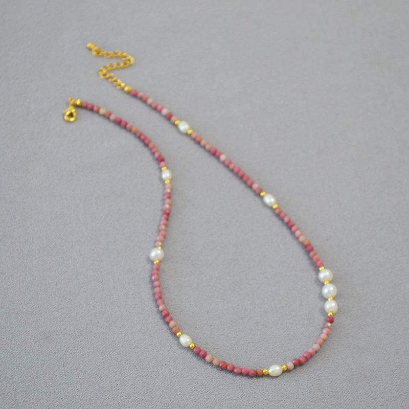 フランスの優しさと甘さの薄いピンクの薔薇の真石の数珠の淡水の米の粒の真珠の気質の重ね帯の百合の細いネックレス
