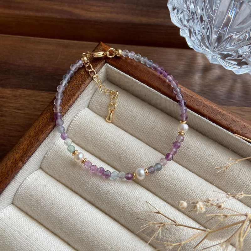 韓国系少女グラデーションラベンダー蛍石ビーズブレスレット天然淡水真珠シンプル小衆手飾り卸売り女
