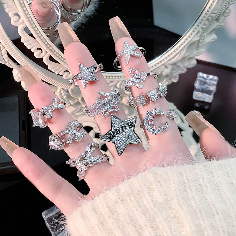 フラッシュ星月シンプル風軽豪華指輪フラッシュドリルins大衆デザイン高級感精緻食指戒潮