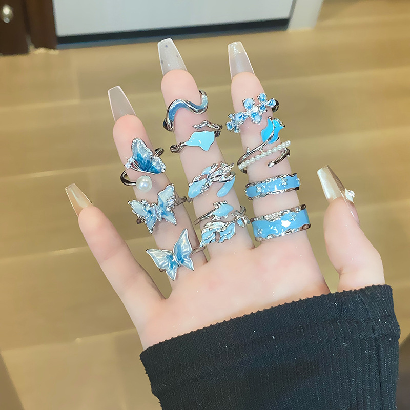 甘いクールなフランスのカラードリルの海の青いジルコンの開口指輪のキャンディーの軽い豪華な大衆の設計は簡単で高級感のある食べ物の指輪です。