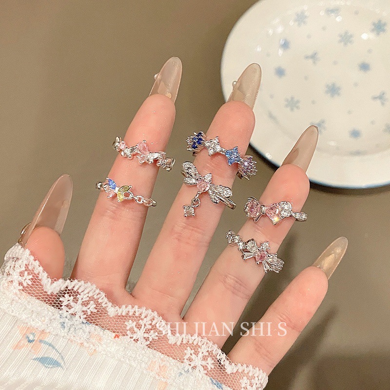 小清新な蝶のダイヤモンドの口の指輪の女性の大衆のファッションの軽豪華な高級感の指の指輪の気質は指輪を畳んでいます。