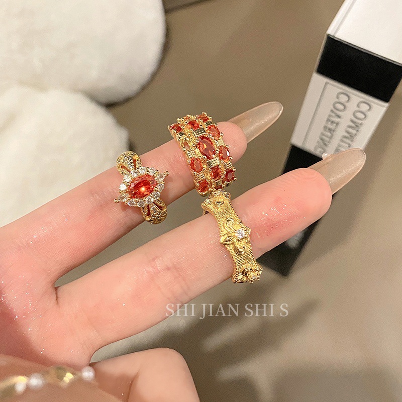 宮殿スタイルの女性用ザクロレッドダイヤモンドリング、ニッチな輝きと白い模様の人差し指リング、ハイエンドの気質リング