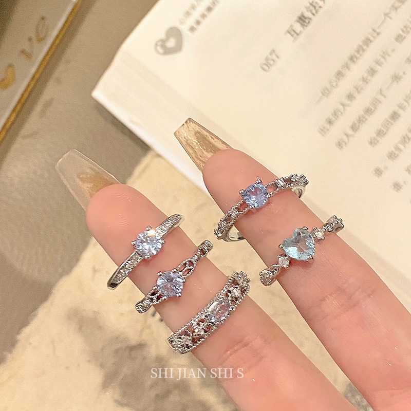 ミニマリストシーブルージルコンプレーンオープンリング女性ニッチスタッキング多用途パーソナライズされたライトラグジュアリーコールドスタイルリングアクセサリー