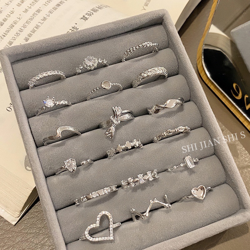 Ins潮冷淡な風にジルコンを入れる非対称的な大衆デザインの軽贅沢な高級開口部の極めてシンプルな指輪