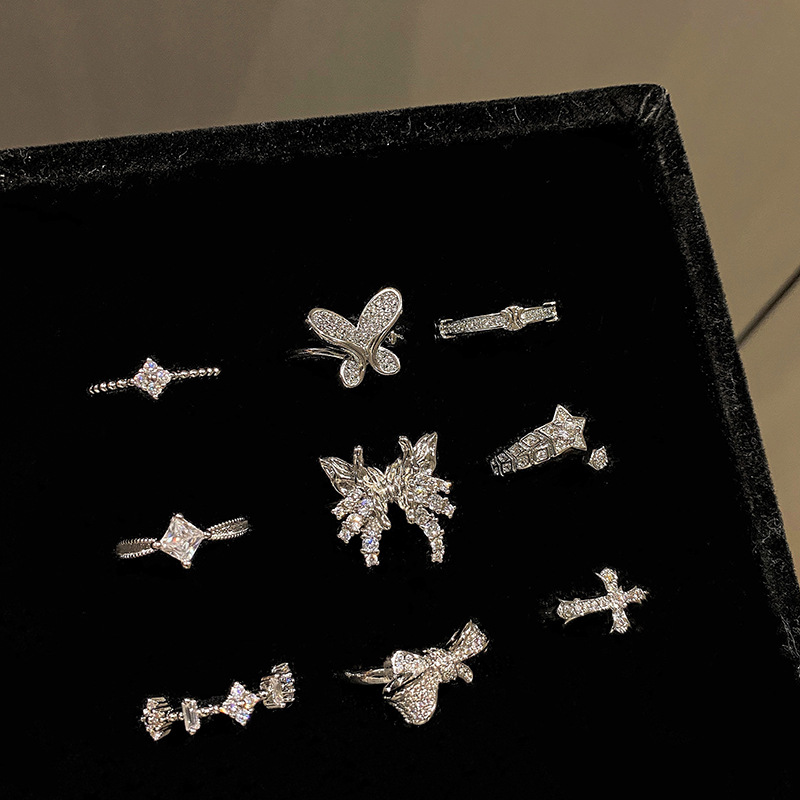 白月光系新型高級感小衆デザイン指輪冷淡風クロスオープン個性insリング