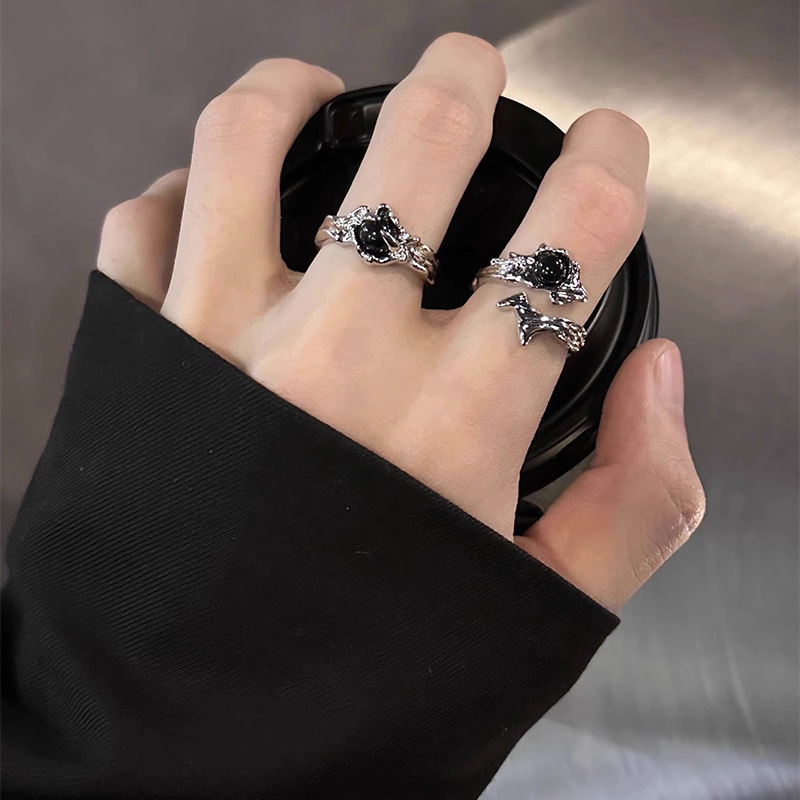 オリジナルダークスタイル棘ジルコニアリング女性向けニッチデザインテクスチャードミニマリストリング高級感オープンリングトレンド