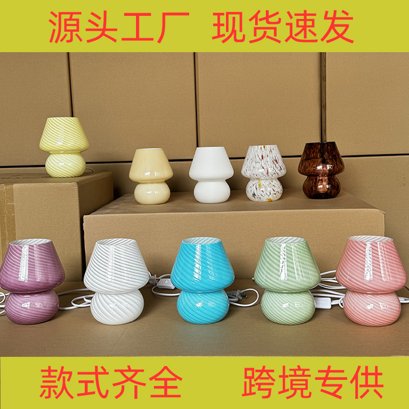 メーカー直販越境新品ガラスキノコ充電小夜灯insデスクトップ置物装飾灯夜灯
