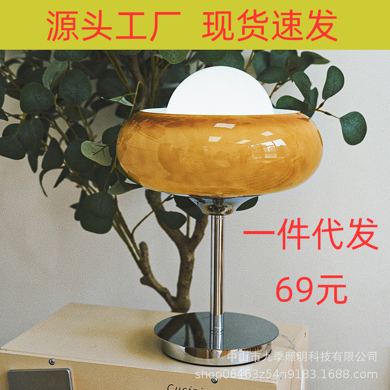 中古ヴィンテージ電気スタンド北欧モダンベッドサイドデスクバッグハウス暖かい卵ネットレッド寝室エッグタルトライト