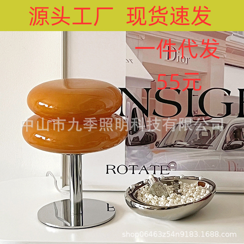 オリジナルデザイン流心卵タルト電気スタンド雰囲気装飾ランプガラス寝室ベッドサイド置物かわいいクリエイティブ電気スタンド