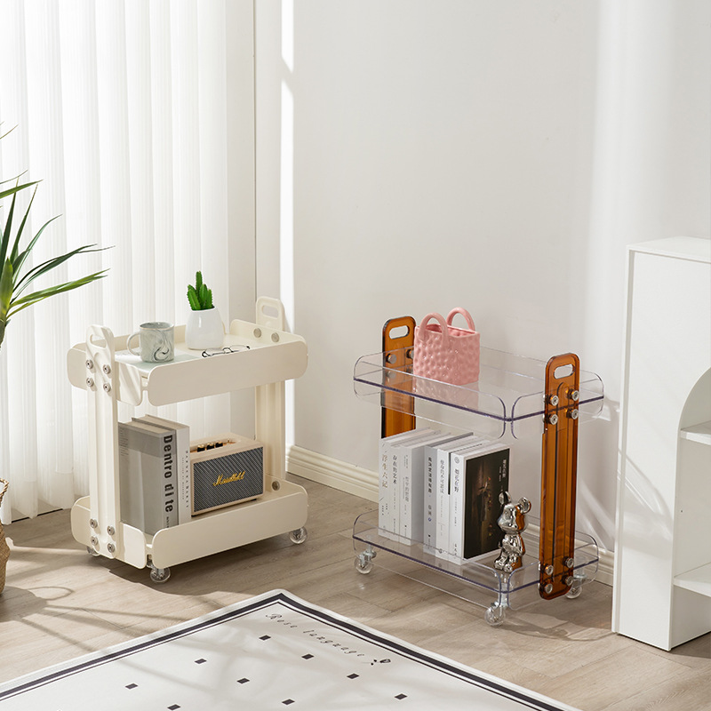 北欧風透明アクリルプーリーネット赤棚辺数家庭用リビングルーム移動カートティーテーブル