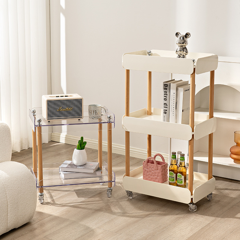北欧シンプルなリビングルームのカート棚家庭用収納整理棚輪付き移動式多層収納棚