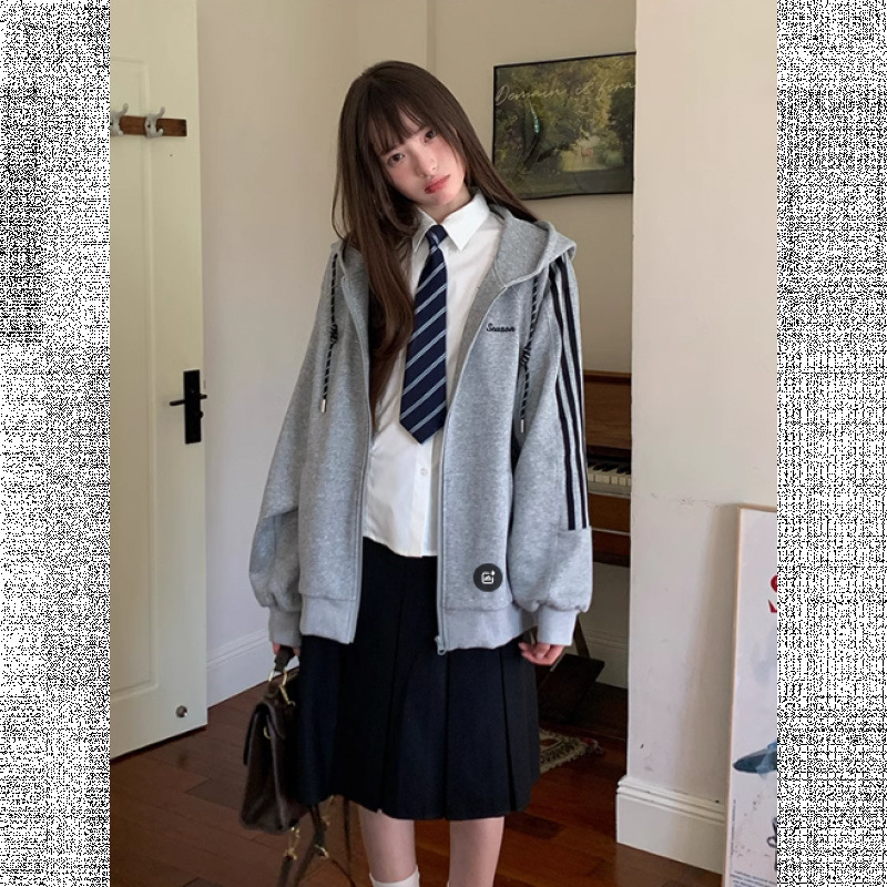 スリーストライプススウェットシャツレディースフード付きジャケット2025秋新作ジッパーカーディガンゆったり万能グレートップ刺繍