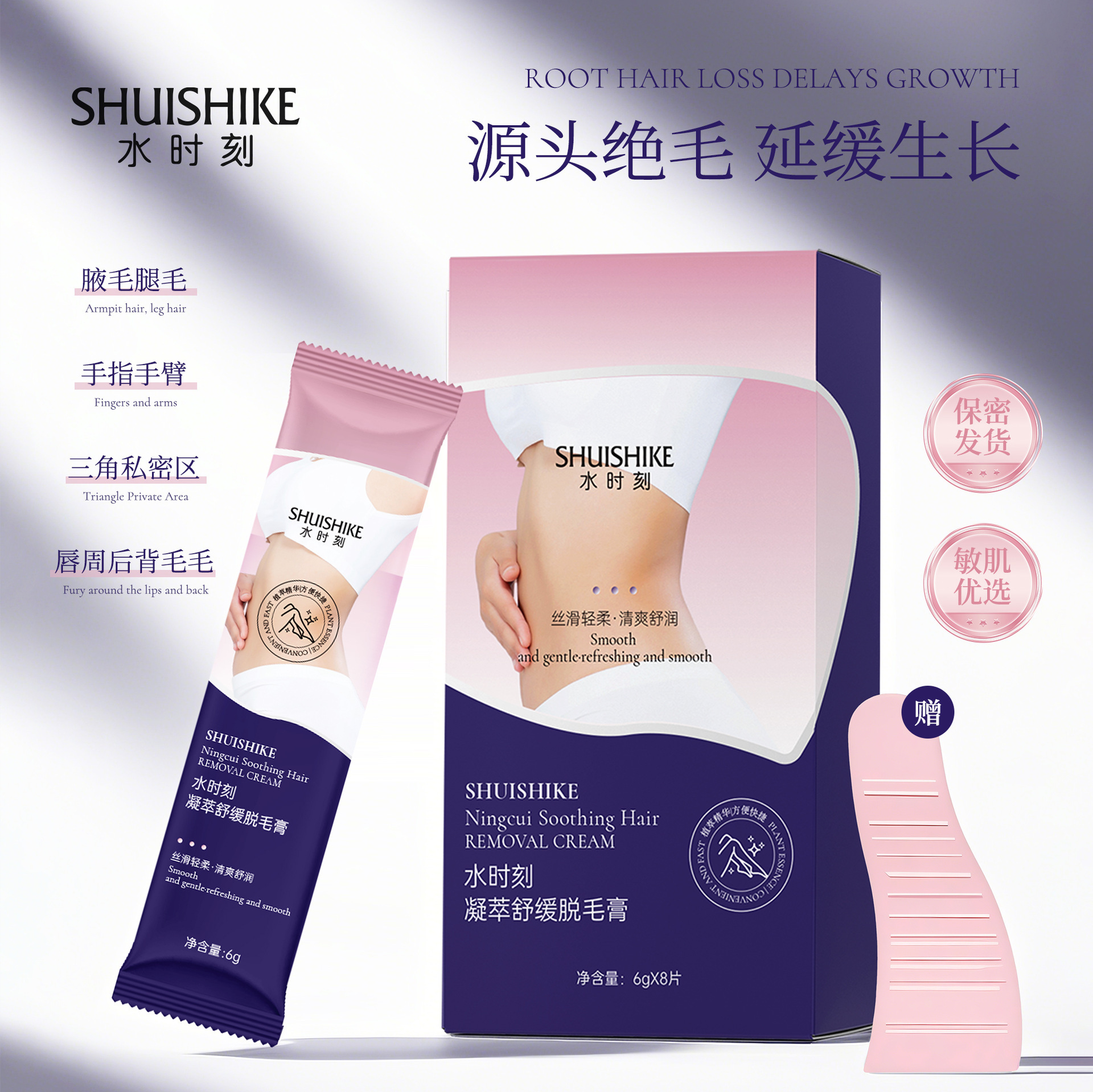 ウォータータイム凝縮鎮静脱毛クリーム 脇毛、脚毛、手毛を除去、低刺激で刺激のない脱毛、スクレーパー付き8パック