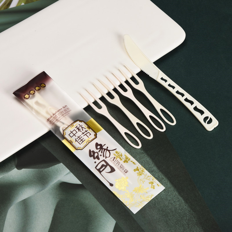 卸売り月餅ナイフフォークセット中秋節佳節1刀4フォークセット使い捨てps月餅ナイフフォーク研磨袋包装