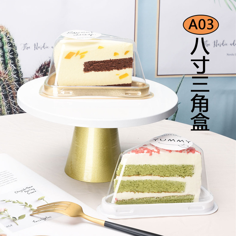 A03透明包装箱pet三角形ケーキケース8インチカットブロック千層ケーキカット部品ブリスターケース金色底
