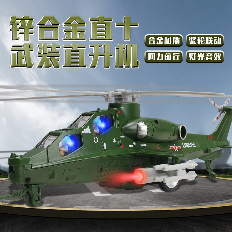 武直10軍用武装完成品ヘリコプター合金軍事児童回力音光玩具模型誕生日プレゼント