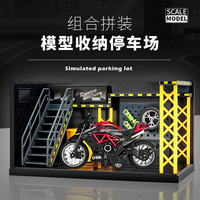 国境を越えたシミュレーション合金バイク収納ケース車庫修理工場diy駐車場シーン装飾装飾モデル