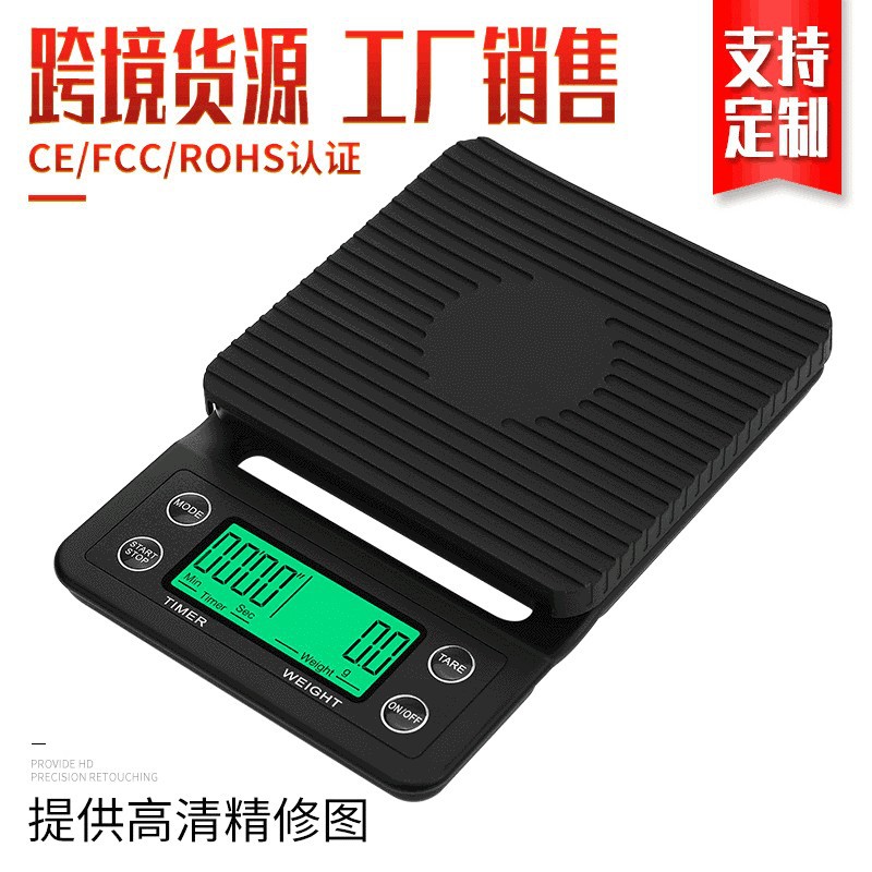 手抜きコーヒー電子秤は計時3kg 0.1g商用バーキッチン秤ステンレステーブルに断熱パッドがついています。