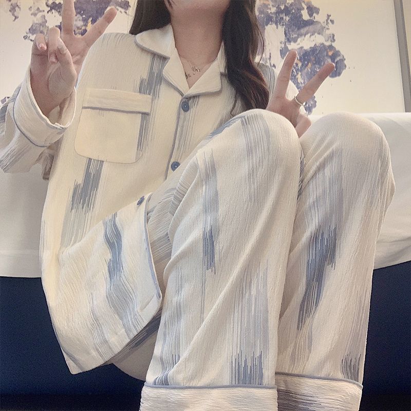 女性用パジャマ、春と秋のカーディガン、ポリエステル綿100%、シンプルな漫画、かわいい、日本製長袖、学生は家着として着用できます。