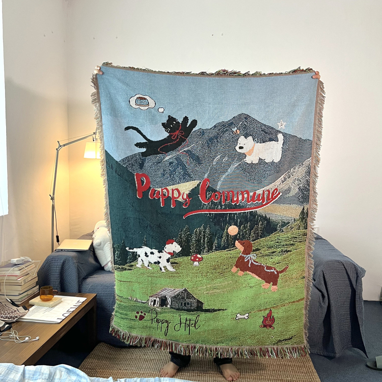 GALA自家制オリジナル子犬楽园中古风アートタペストリーソファブランケットシングルニット毛布カーペットコットン