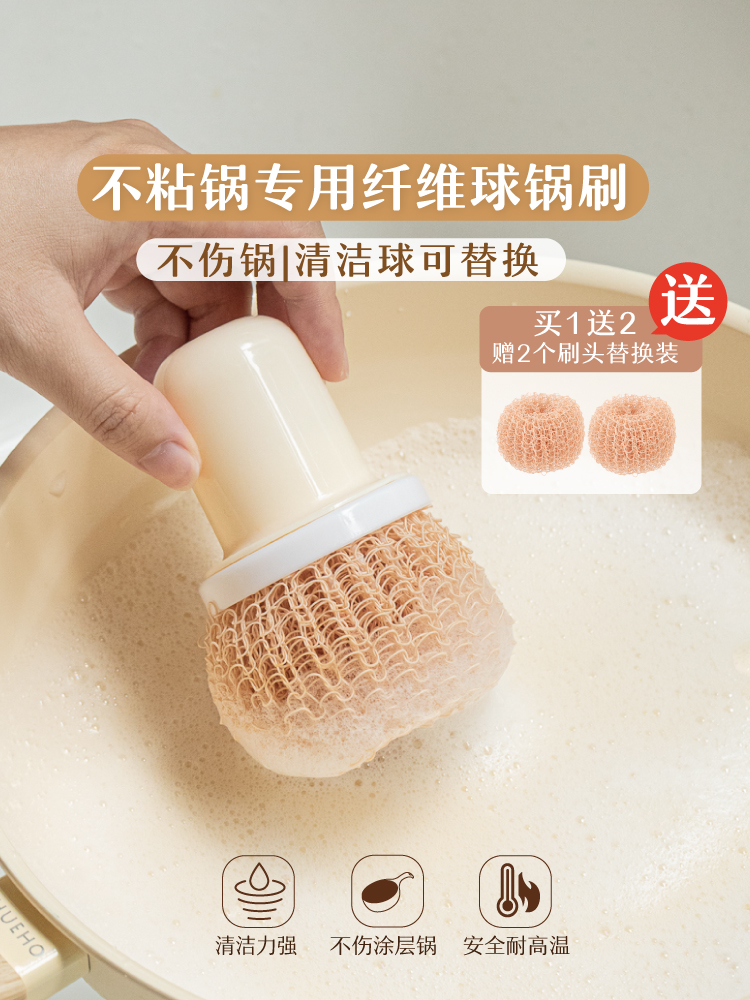木可繊維ナノ洗浄ボール家庭用粘着鍋専用傷なし鍋ハンドル洗浄鍋ブラシキッチン洗浄ブラシ