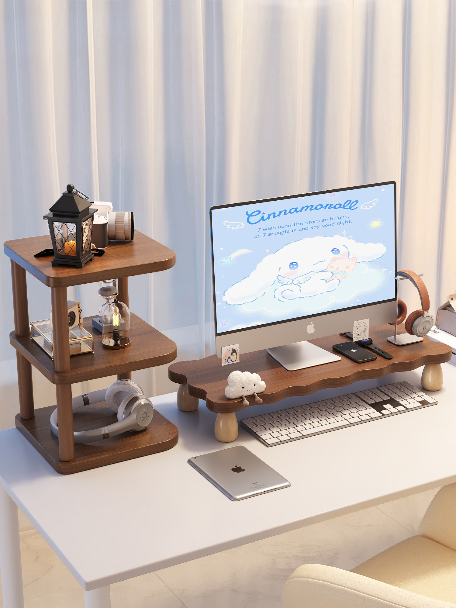 デスクトップパソコン高くなった棚のディスプレイ高くなった棚のデスクトップのキーボードのブラケットのディスプレイのパッドの高い台のデスクトップのスタンド