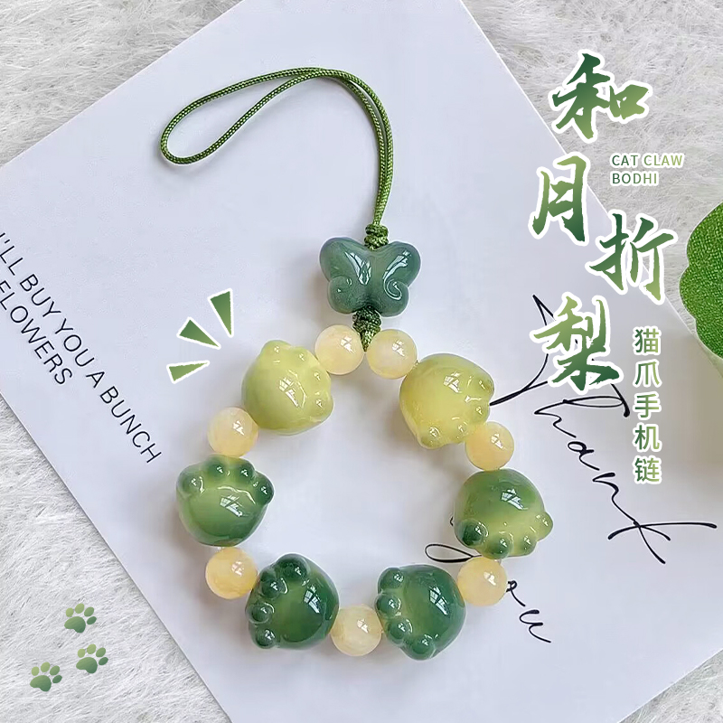 リトルライムかわいい猫の爪菩提携帯電話吊りチェーンインスタイルショートストラップキーホルダーカップル小さなハンドツイストペンダント