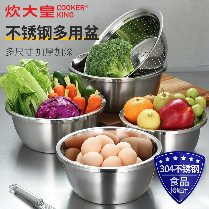 炊事大皇の規格品304ステンレスのたらいのふるいのセットの厚い材質のたらいのふるいの5セットの多規格