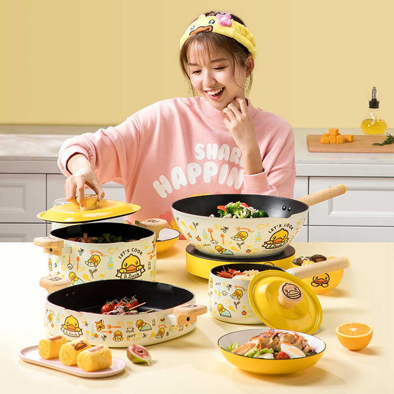 炊事大皇b.duck純正品小黄鴨ミルク鍋16cm無粘鍋カップラーメン鍋赤ちゃん補助食鍋アニメ模様