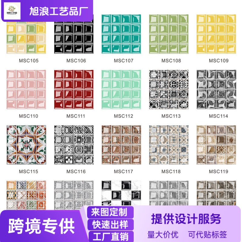 Mscクロスボーダーの明るい膜の正方形の磁器のれんがはモザイクの図案を貼ります。