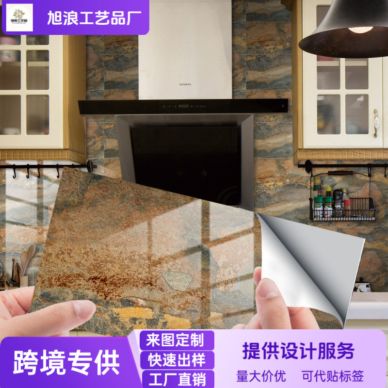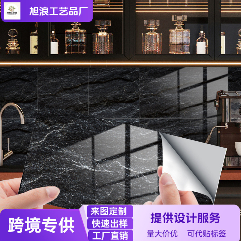 クロスボーダーの厚い大理石の水晶の膜のタイルの壁は防水の防汚の台所のトイレを貼って自ら壁紙を貼り付けます。