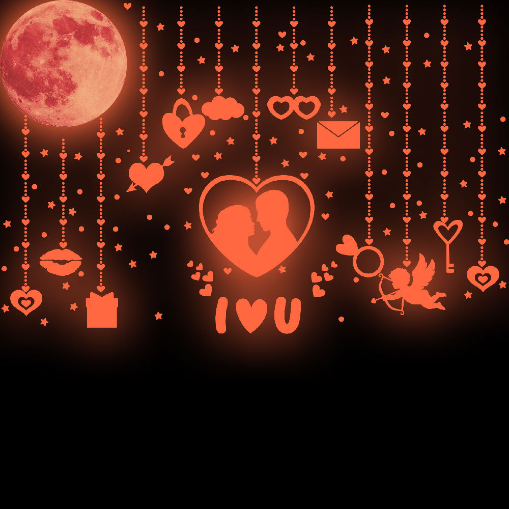 3694クロスボーダーのバレンタインデーの夜光は蛍光を貼ってピンクの夜光を貼って祝日のパーティーの雰囲気の壁を貼って卸売りを貼ります。