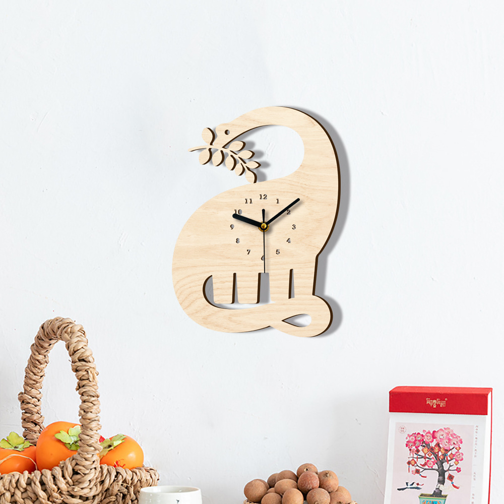 Mcc409クロスボーダー木質掛け時計の針は静音スキャンのムーブメントの恐竜の形を示しています。