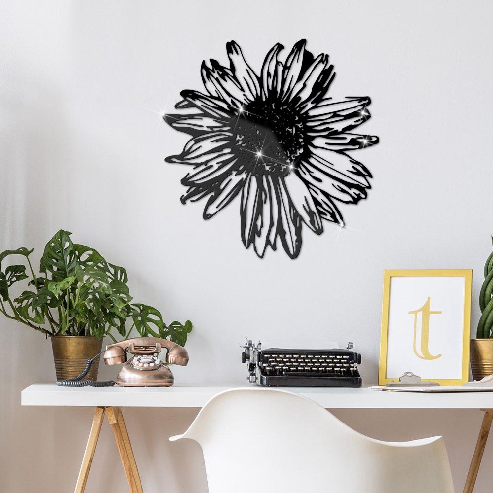 Jm1011クロスボーダー3d立体デイジー花アクリルミラーステッカー2mmホームデコレーション自己粘着ミラーウォールステッカー