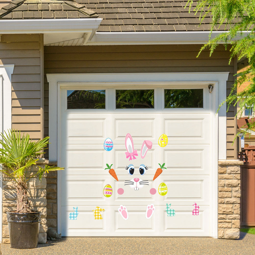 Hw033イースターhappy easter漫画ウサギ彩卵大根pvcガレージドア貼り祝日装飾貼り