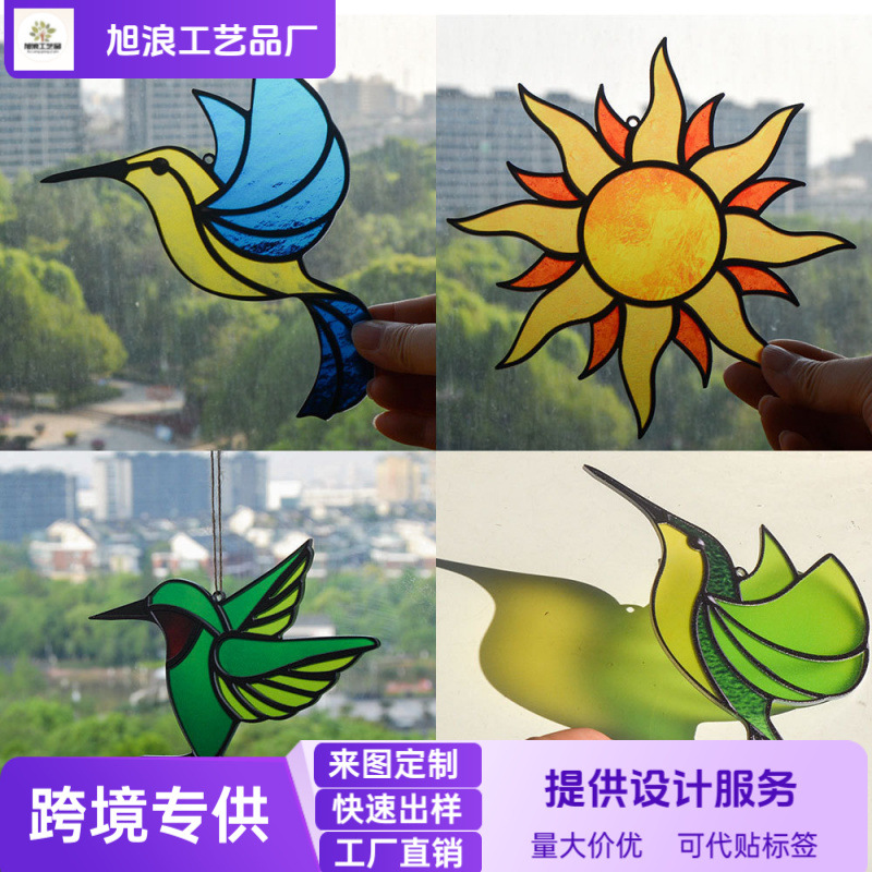 TYU015-018サンキャッチャー平手打ちスタッドガラスカラーハチドリ太阳月牙アクリルペンダント