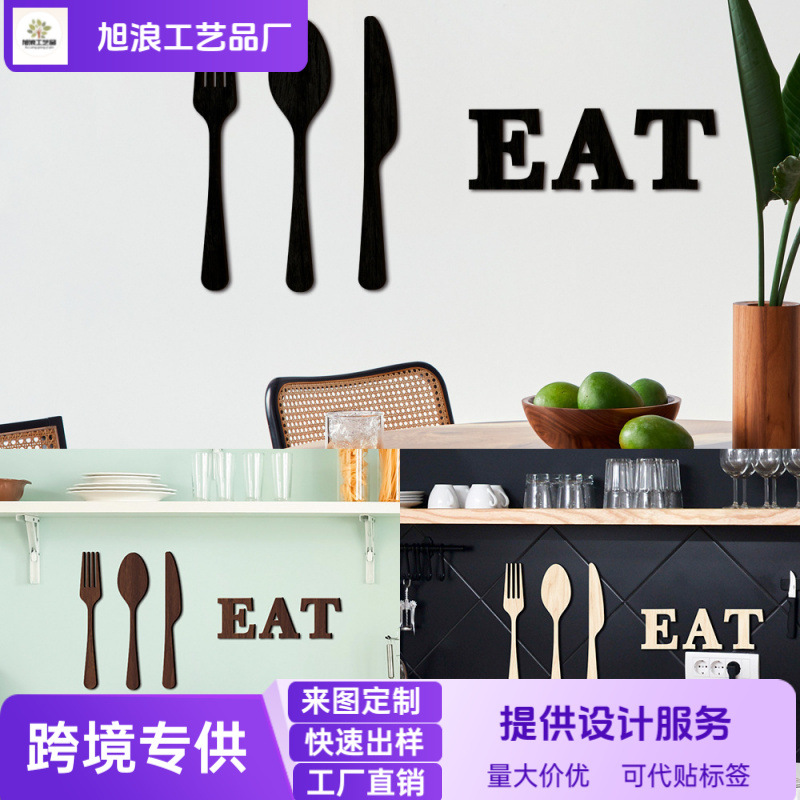 Mz184クリエイティブ立体木製カトラリーナイフフォークeatウォールステッカーペンダントキッチン背景壁装飾壁ステッカー壁飾り