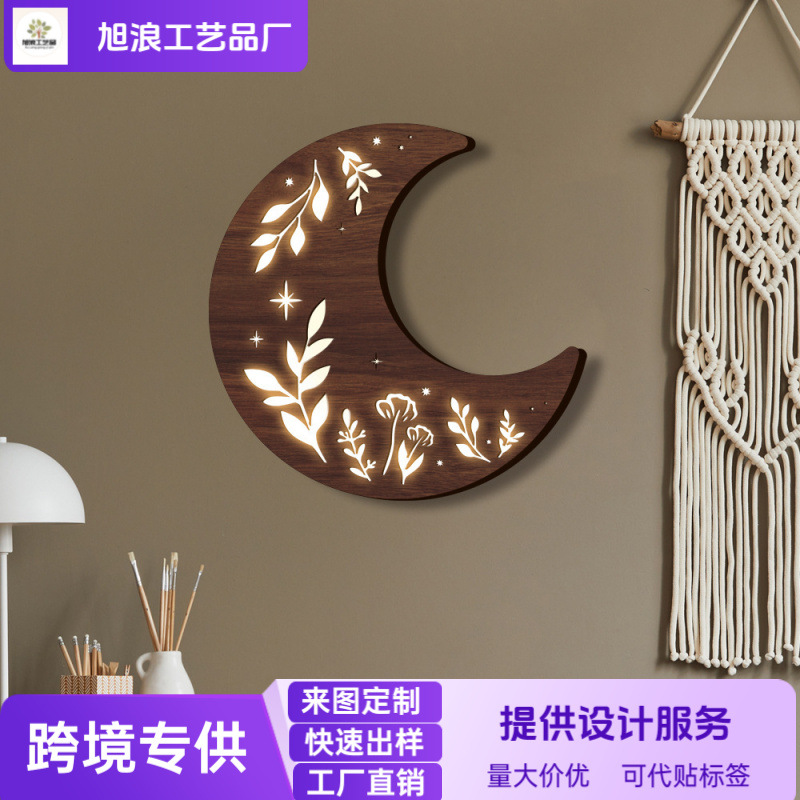 Mz200クロスボーダー民族風木製発光装飾壁掛け月5mm + 3mm板合成壁飾り壁貼り