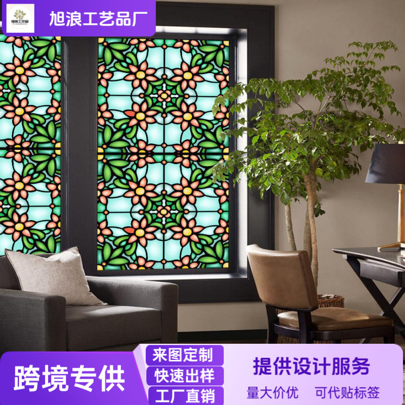 Bl126国境を越えたカラーレトロな花の静電気ガラス貼りpvcゴムなし窓フィルムはガラス窓の花を取り除くことができる