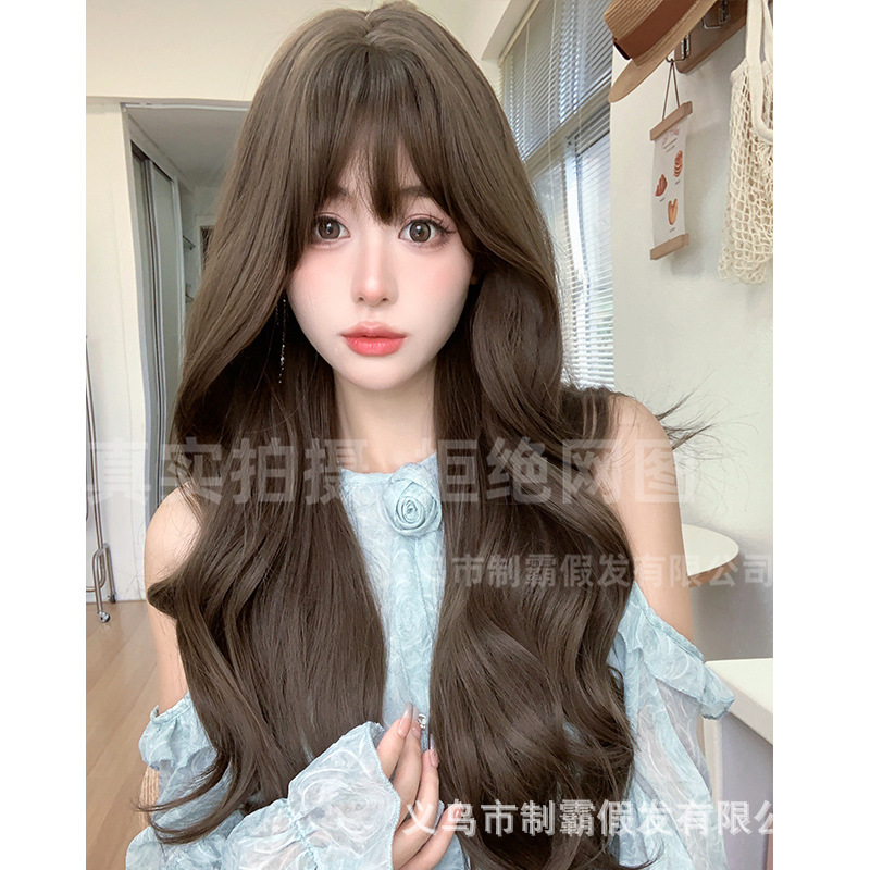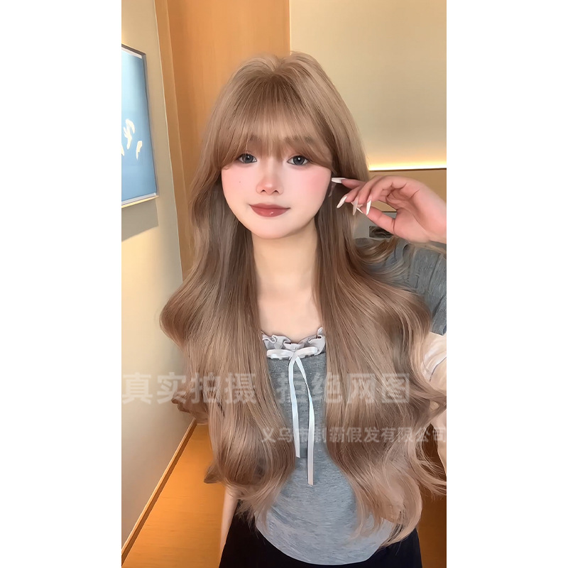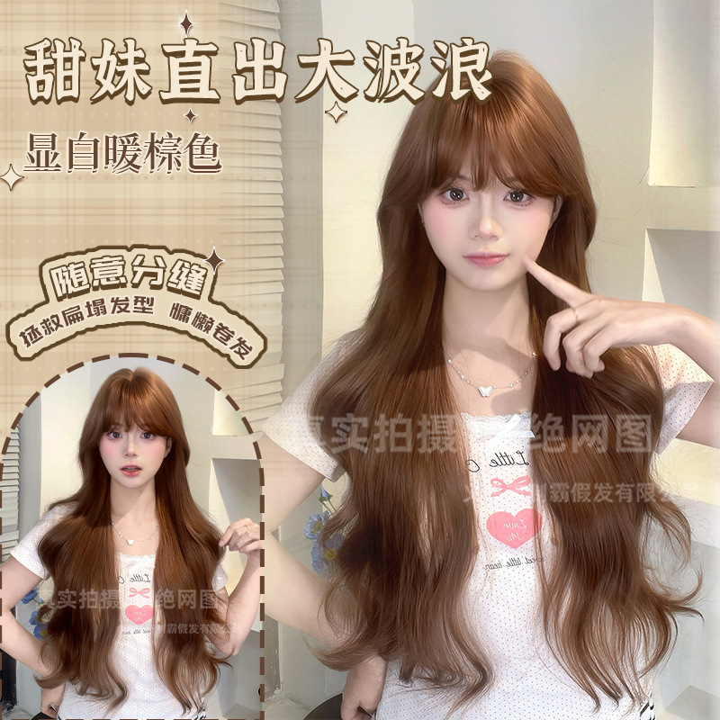 制覇かつら蜜茶ブラウン女性長髪ウール巻き空気前髪大波日常全頭カバー現物卸売り