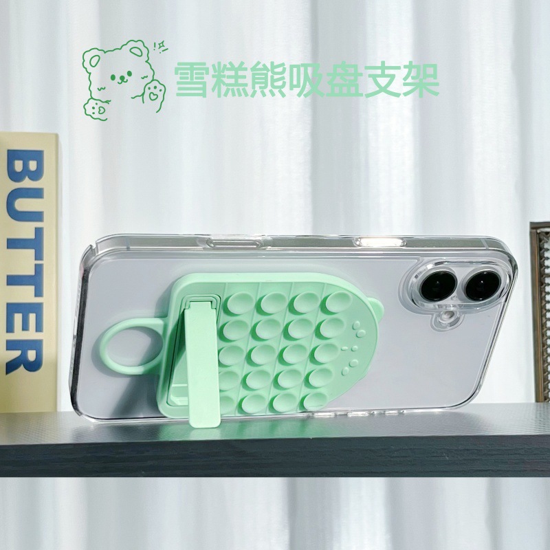 アイスクリームの字形のシリコン携帯電話のケースの携帯電話のスタンドの吸盤のスタンドの磁気はとても便利な収納のガラスの折り畳みのスタンドを吸います。