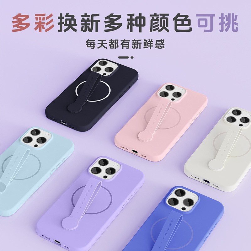 iPhone16に適したクロスボーダーホットモデル目に見えない磁気液体シリコーンApple 15回転シリコーンロープ携帯電話ケース