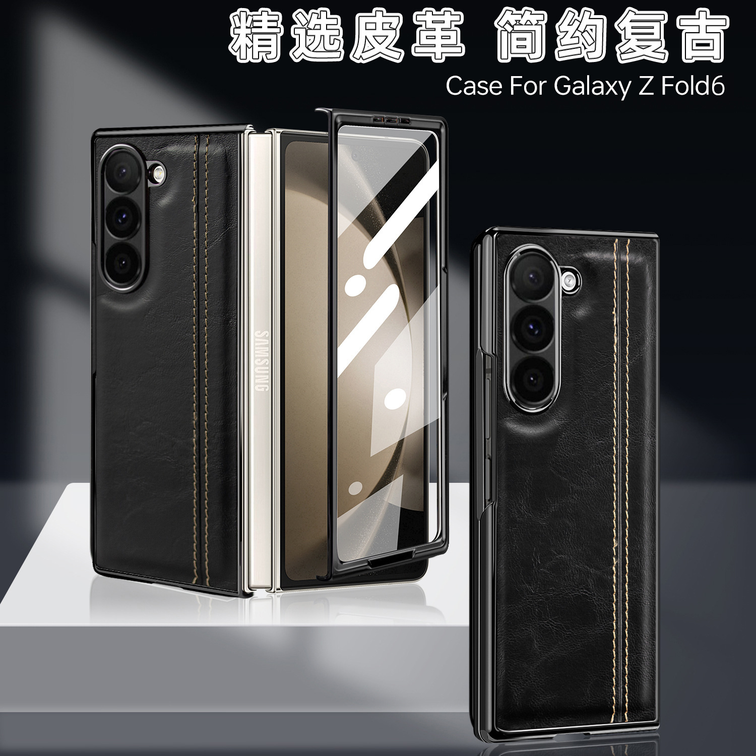 Samsung Fold 40% off スタックスクリーン携帯電話ケース、レトロレザーファッションステッチシェルとフィルム一体型fold5携帯電話ケースに適しています。