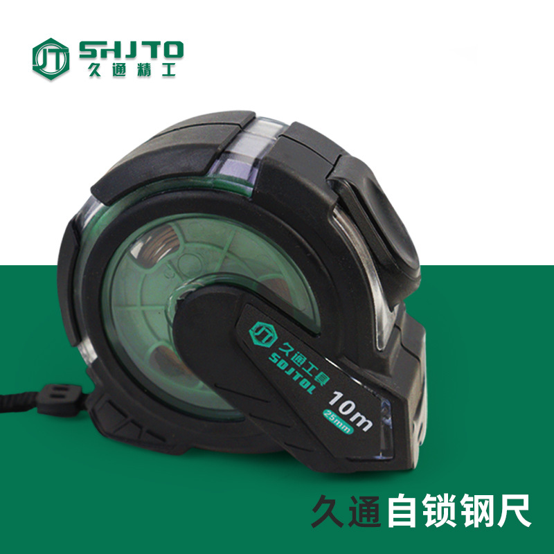 メーカーは久通工具の測定尺の巻尺を販売しています。自動的に5メートルのゴムをロックします。