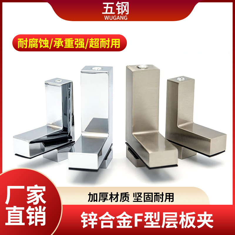 厚みのある調節可能な F 型ガラス棚クリップ亜鉛合金 7 文字型木製棚ホルダーハードウェアアクセサリー卸売